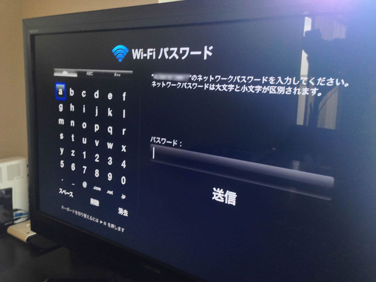 ▼ 無線LANのパスワードを入力して、リモコンで決定。