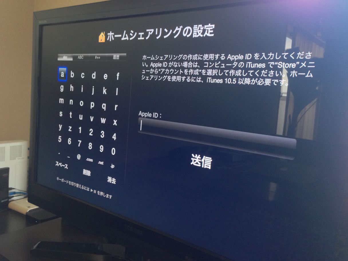 ▼ Apple IDを入力して、リモコンで決定。